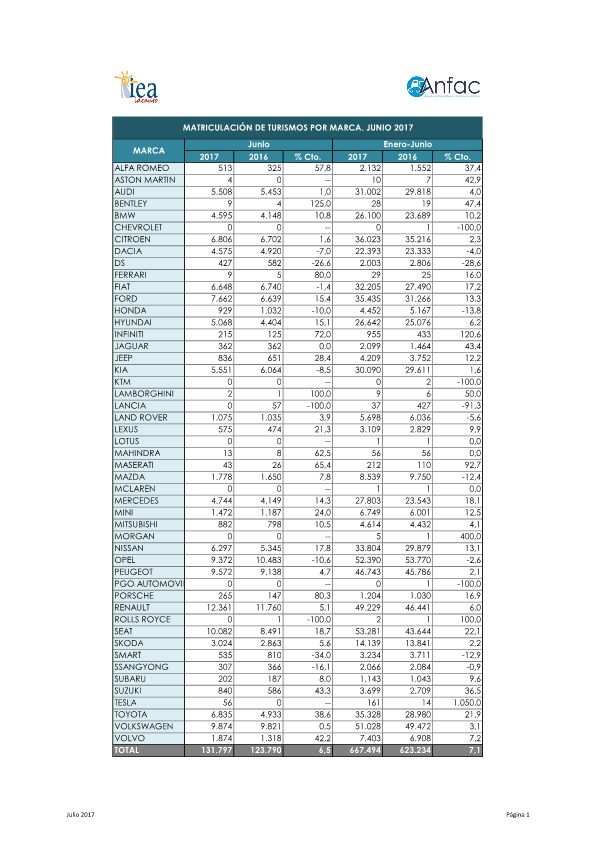 Recién recibidas de ANFAC las cifras de matriculaicones correspondientes a junio, os adjunto las que corresponden a JAGUAR: