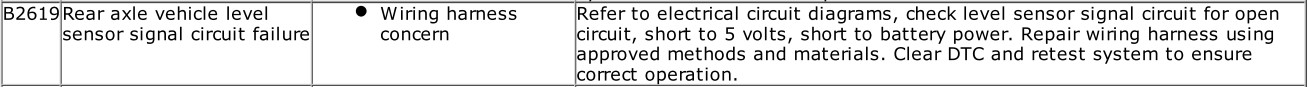 B2619 : señal de sensor de altura del eje trasero:fallo del circuito,anomalías en el mazo de cables..