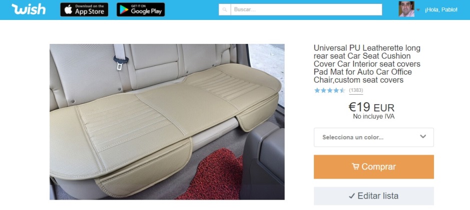 La funda la he comprado en Wish, las hay de muchos colores, yo l he comprado Beige, se desmonta asiento y va con cinchas, yo le voy a coser unos Isofix y asi la puedo quitar y poner.