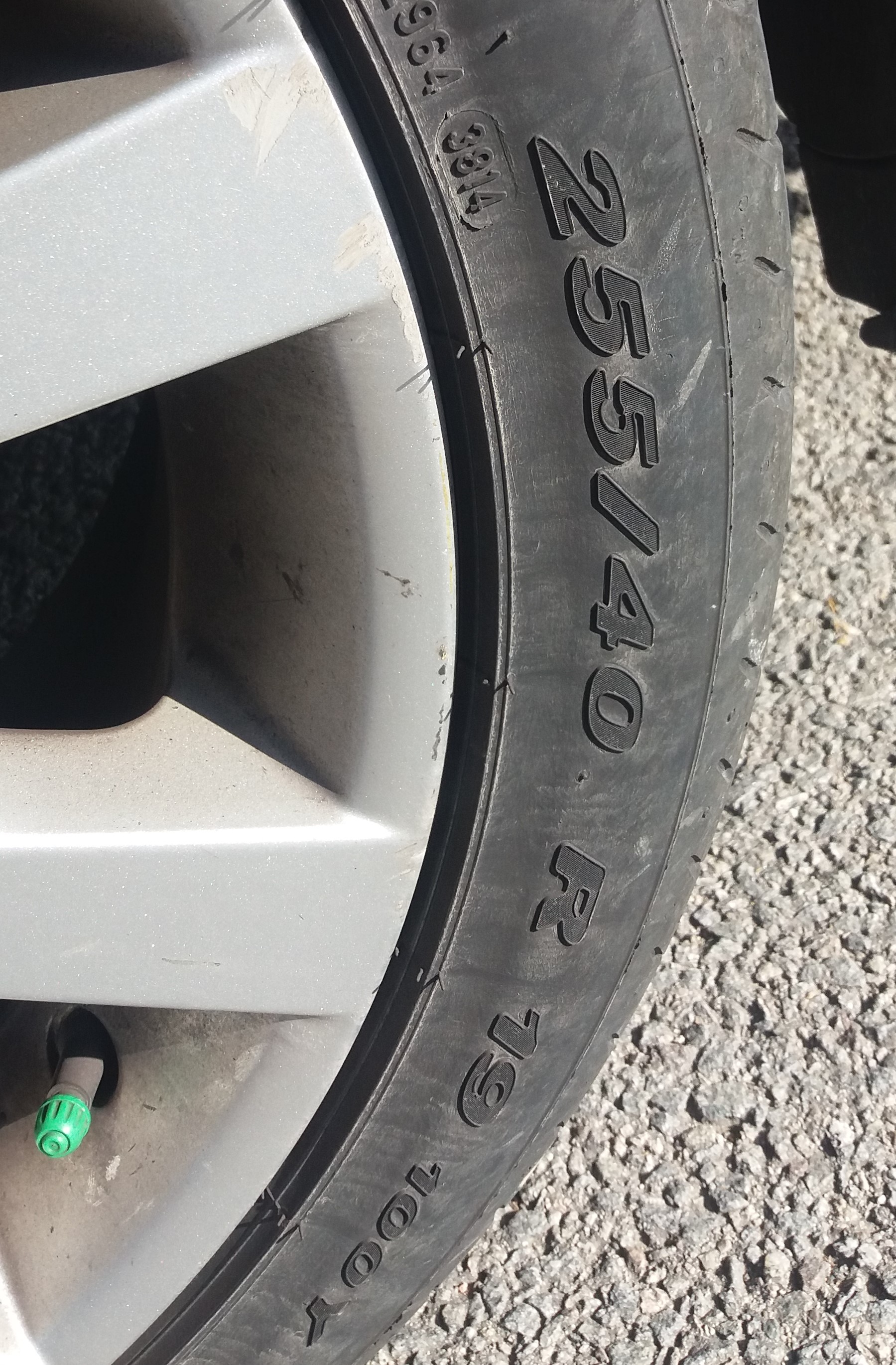 Os adjunto fotos para que me podáis orientar un poco. Me fastidiaría bastante que en mis llantas actuales no pueda poner neumáticos 235/55 R17, porque en esas medidas tengo bastantes opciones a escoger a precios "razonables" (dentro de lo que cabe), mientras que si estoy atado a 255/40 R19, las opciones se reducen muchísimo y los precios se incrementan sensiblemente.