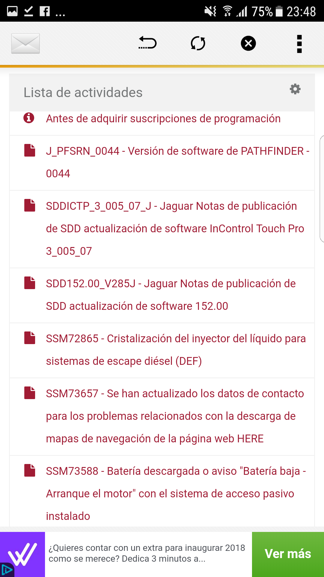 La lista de actividades no se refiere específicamente a tu coche, sino problemas que van apareciendo en otros vehículos por lo que tengo entendido
