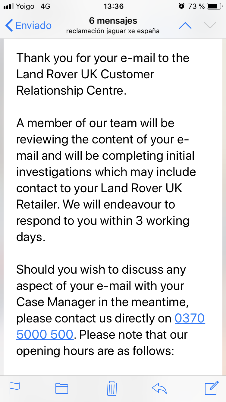 Gracias, acabo de mandar un email calentito. Me tienen hasta los webs en Jaguar, en el concesionario y todos. Si os cuento la última que me ha pasado no os lo creéis (yo tampoco)