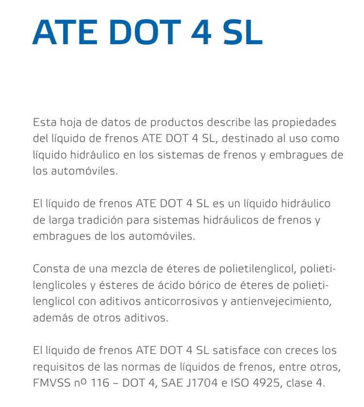 !Ojo que este es DOT 4 clase 4 acorde a norma ISO 4925 y no DOT 4 clase 6!. ATE también tiene DOT 4 Clase 6.