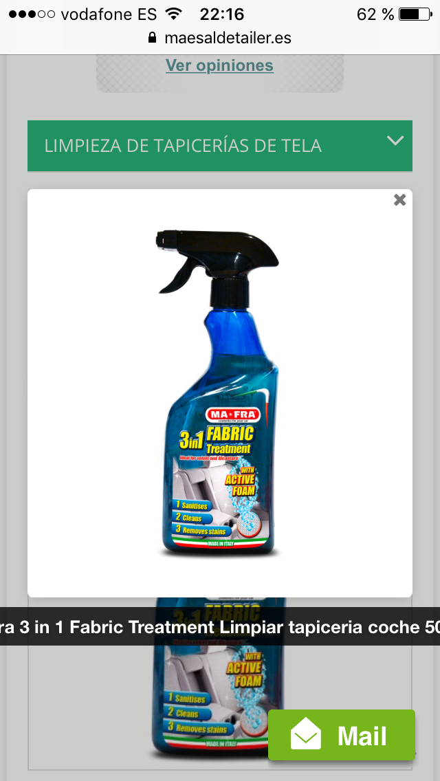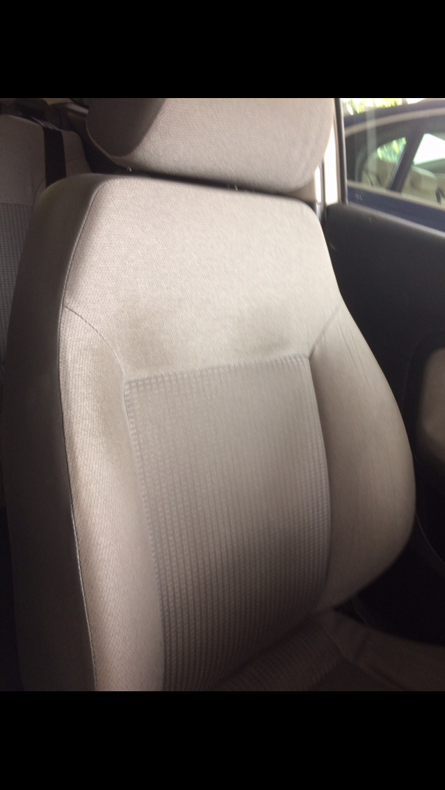 Lo probé en los de un Seat Ibiza, el coche tiene 14 años, en los que se limpió cuando tenía unos 2 años antigüedad con la espuma limpiadora de Turtle wax, los resultados no fueron muy buenos y me di por vencido. Hace un mes probé el limpiador de tapicerías Ma-fra, se supone que lleva oxígeno activo y ayuda a levantar y desinfectar la tapicería, el bote puede parecer el del tipico limpiador que encuentras en una gasolinera o centro comercial, pero el resultado ha sido sorprendente teniendo en cuenta que su precio no varía mucho con respecto al de Turtle. Os dejo fotos para que veáis un 50/50 y el antes y después de los respaldos. El proceso ha sido aplicar, esperar 2 minutos y restregar con cepillo de cerdas medias, aclarar y secar con palo de microfibras.