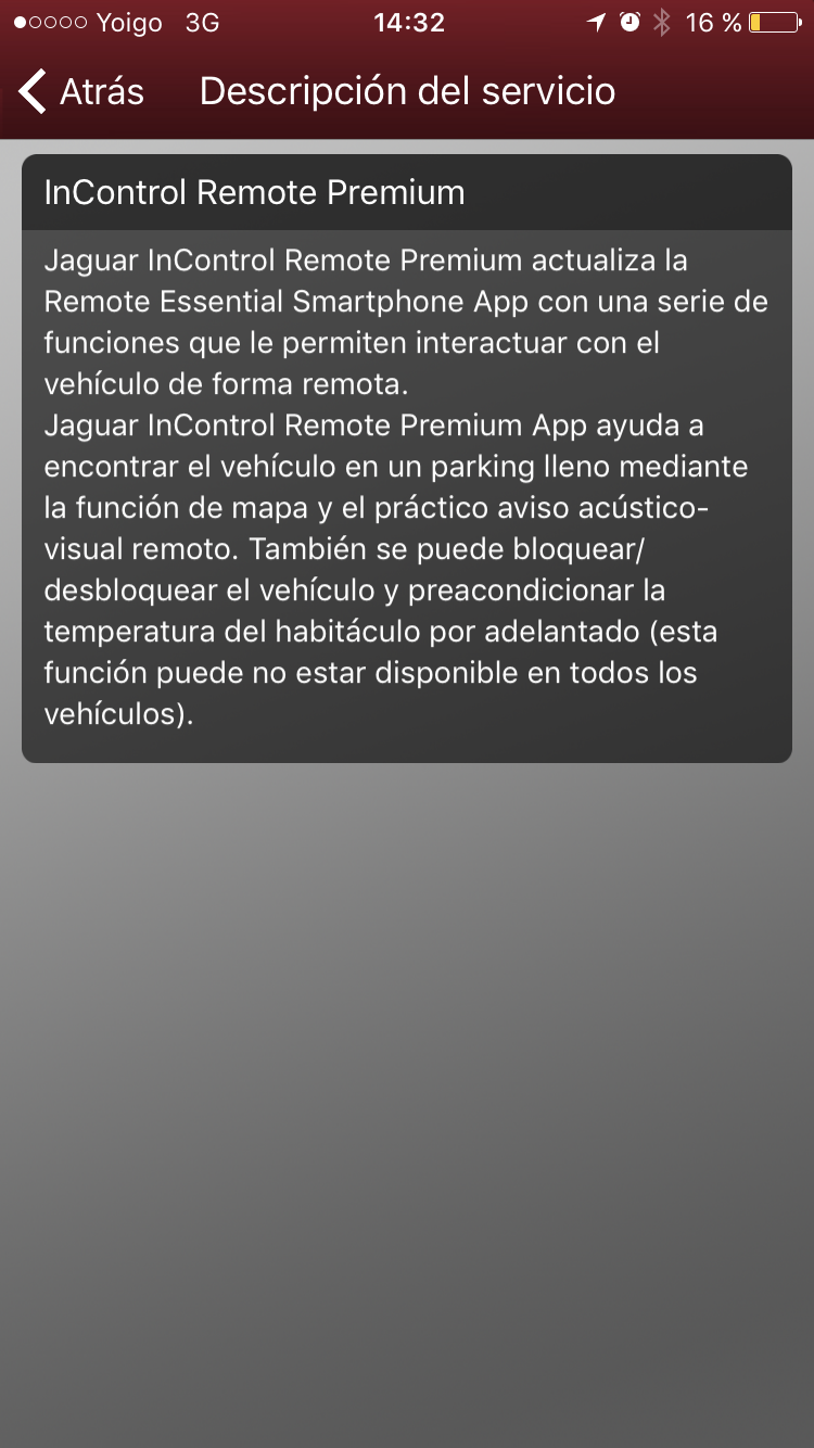 Yako escribió: 01 Feb 2017 12:37 Hola brugalete, acabo de descargar la aplicación en android y me aparecen cuatro pantallas, la que dice donde está el coche, la de la climatización, la de asistencia del vehículo ( en esta no aparece el informe de estado del vehículo), y la que no aparece es en la que pone que el coche está en taller etc, me imagino que el problema es del sistema operativo.
