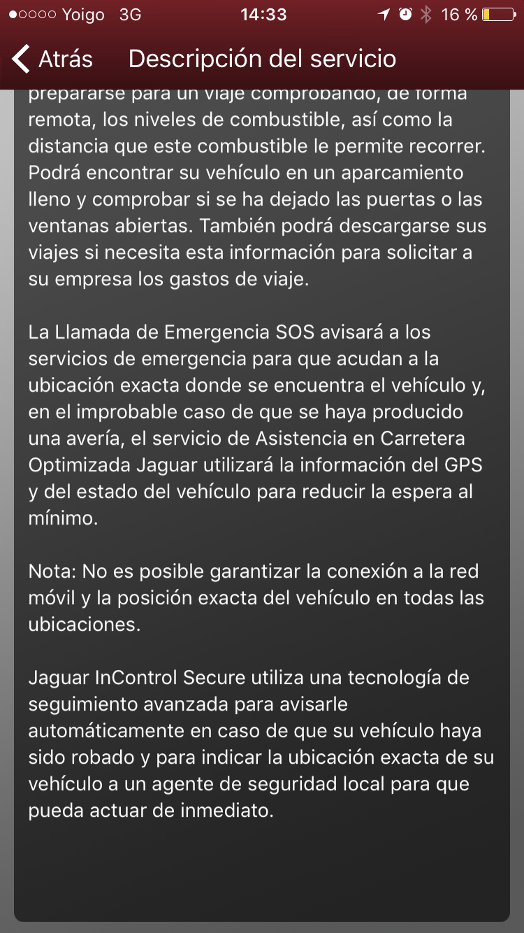 Yo lo tengo instalado, y efectivamente es por si te roban el coche, a mí me llamaron un par de veces al dejarlo en el taller, por qué tienes que avisar a través de la aplicación que el coche está en el taller, si no detectan que está siendo manipulado y te llaman. Cuando lo compre me dijeron que era gratuito mientras dura la garantía después hay que pasar por caja, si no resulta muy caro yo pienso contratarlo, me da bastante seguridad. Y efectivamente atraves de la aplicación puedes ver dónde está el coche aparcado y el estado de varias cosas como batería, nivel de combustible etc.