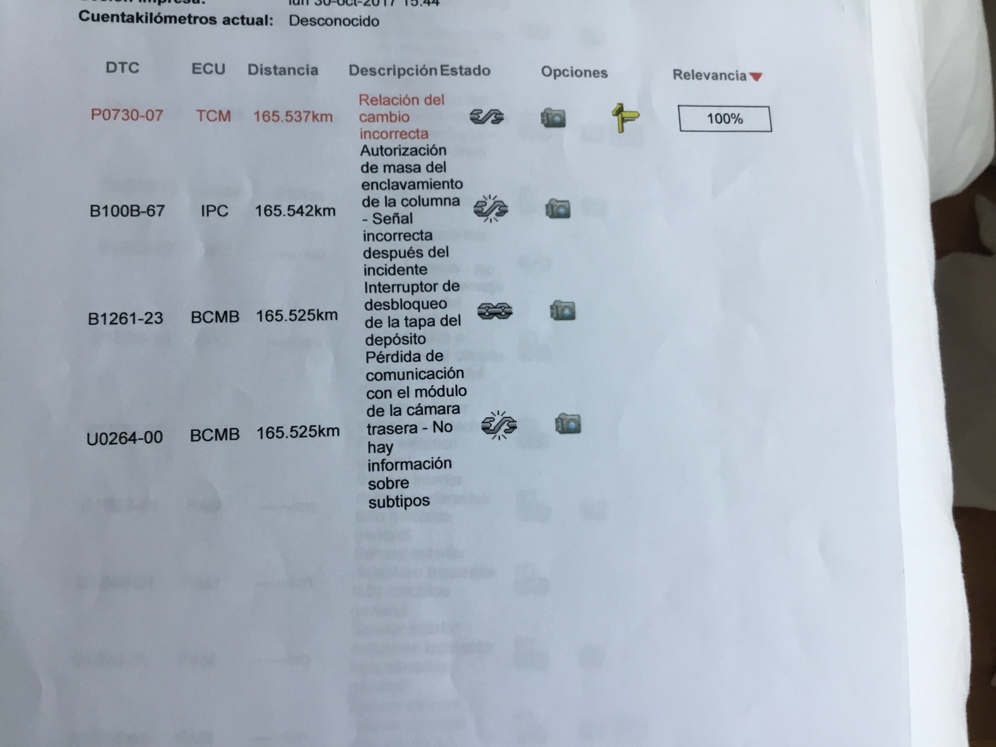 Buenas a todos. Acabo de recoger el coche del servicio oficial, y me han dado el resultado de la diagnosis. Os pongo fotos. Total, me dicen que tengo un fallo entre la tercera y la cuarta velocidad, y que la sexta me entra antes de tiempo. Ya he pedido hora en un taller donde son especialistas en cajas de cambios, a ver si me la pueden reparar y así no poner una nueva.