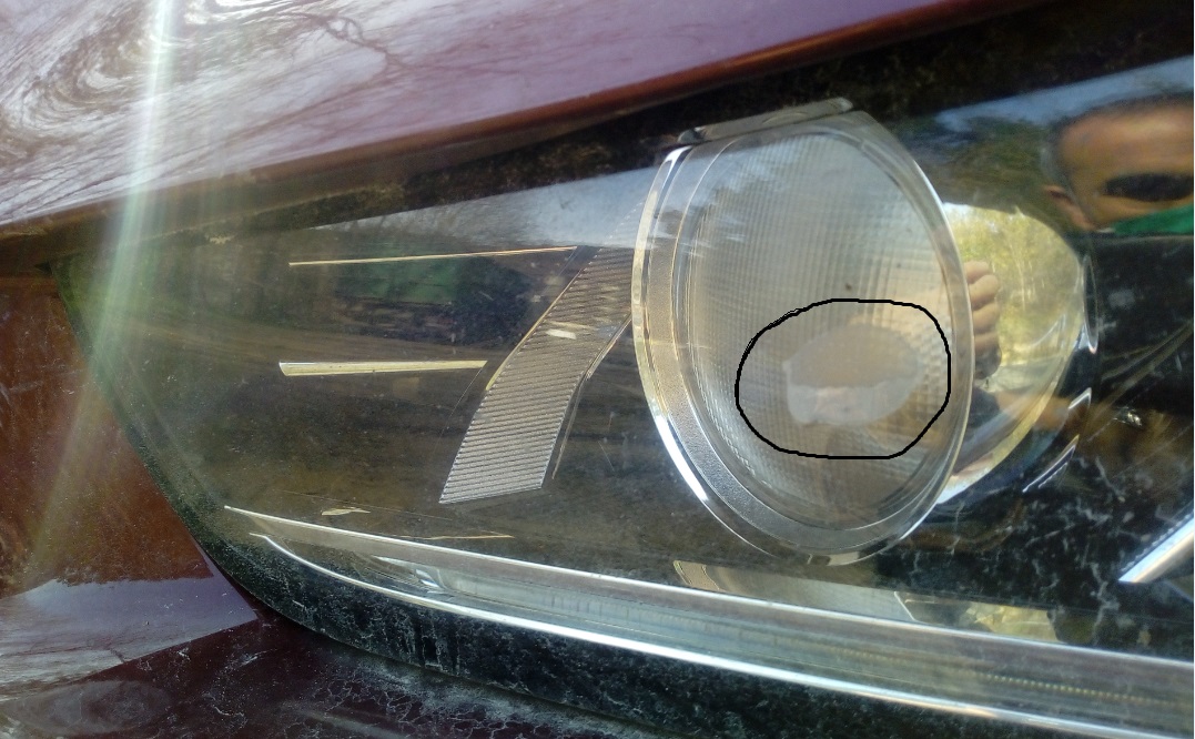 Adjunto fotos en las que se puede observar como se está pelando el cristal del foco delantero izquierdo, parece como si tuviera algún tipo de film protector.