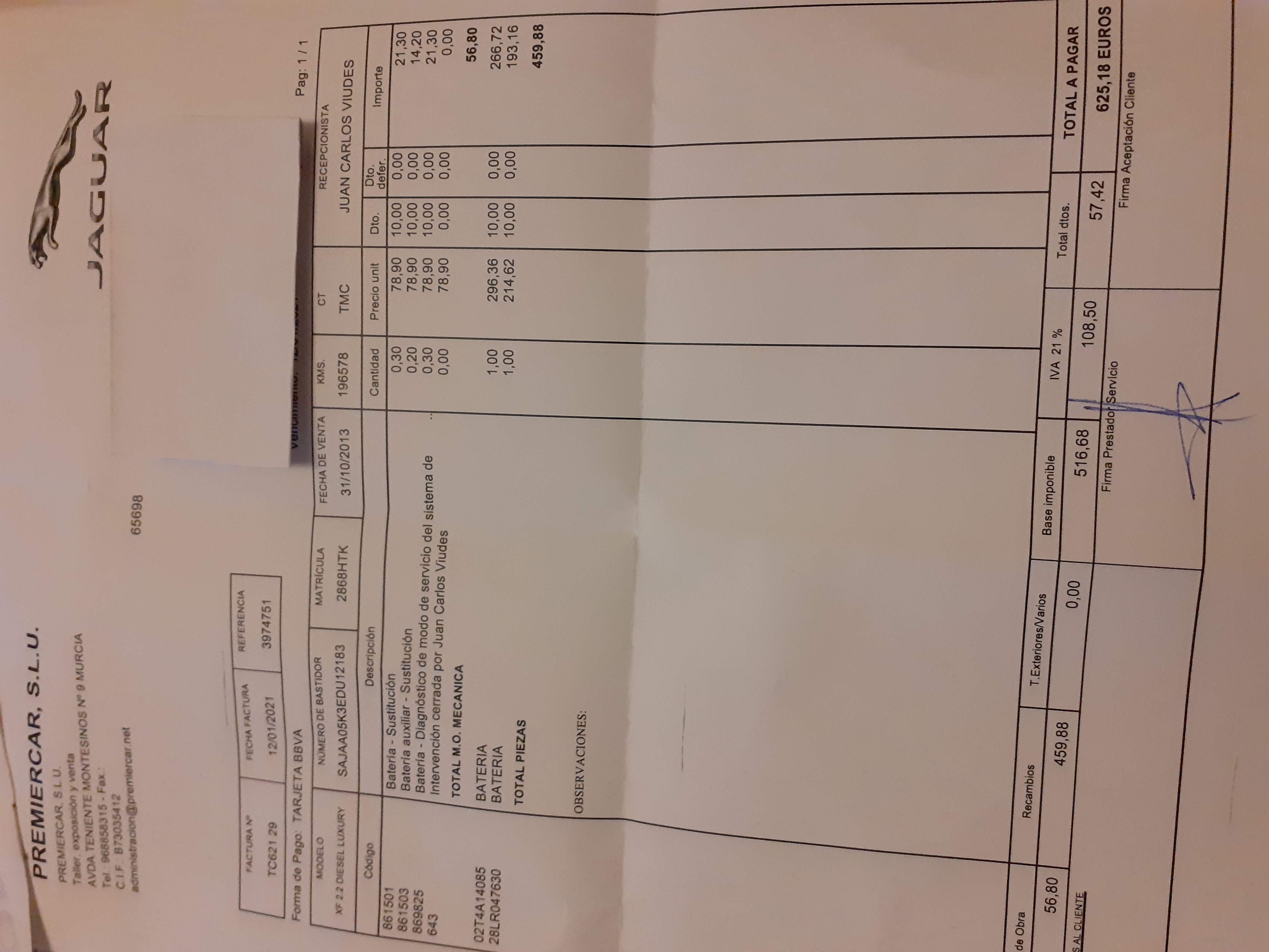 No se que os parecerá... a mi me ha resultado abusivo el hecho de pagar 625 euros por el cambio de baterias de un xf 2.2 200 cv del 2013 . Adjunto foto de la factura. Concesionario Jaguar Land Rover PREMIERCAR de Murcia.