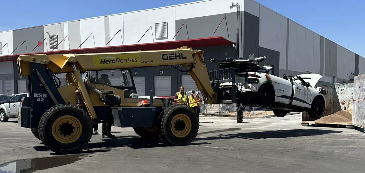 En este caso, los equipos trabajaron para apagar las llamas con agua. Una vez que el incendio disminuyó, el vehículo, un Jaguar I-Pace modificado por Waymo para incorporar tecnología de conducción autónoma, fue trasladado al exterior.