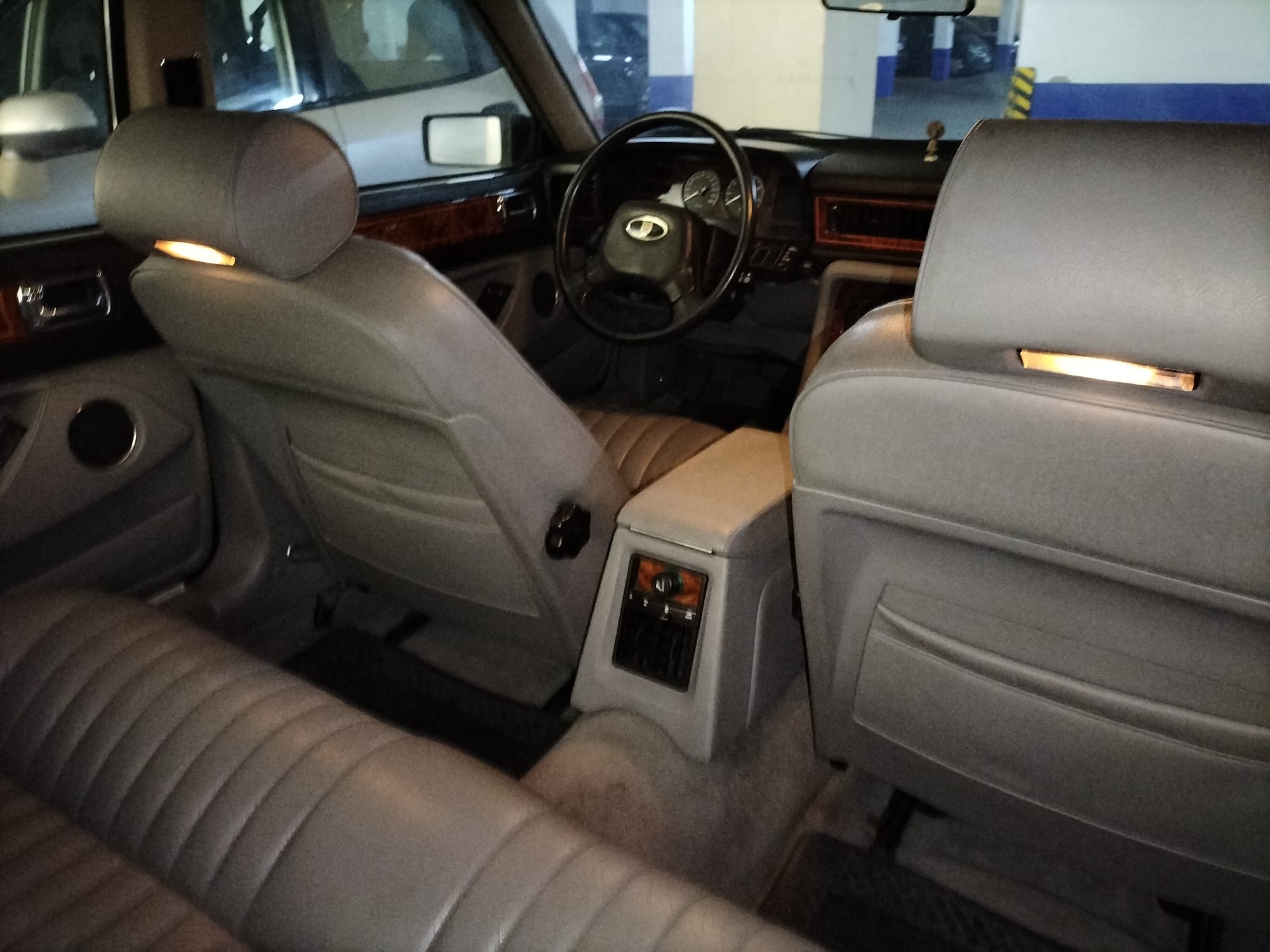 De pintura para el tiempo que tienes se encuentra en un muy buen estado, es gris oscuro, y lo que es el interior se encuentra perfecto. Tiene el problema habitual de la serie 1 de los XJ40 del cuadro digital, la parte de la derecha se apagaba, y cuando quería se encendía, pero afortunadamente la pantallita del ordenador de abordo funcionaba, por lo que, con ella, se puede controlar el consumo y autonomía. Lleva ruedas en medida milimétrica, por lo que, para usarlo, una vez que hay que cambiar los neumáticos sería ponerle llantas en pulgadas. Hace bastantes años se le cambió la junta de la culata y se descarbonizó todos los cilindros, por un problema que tuvo de ralentí inestable.