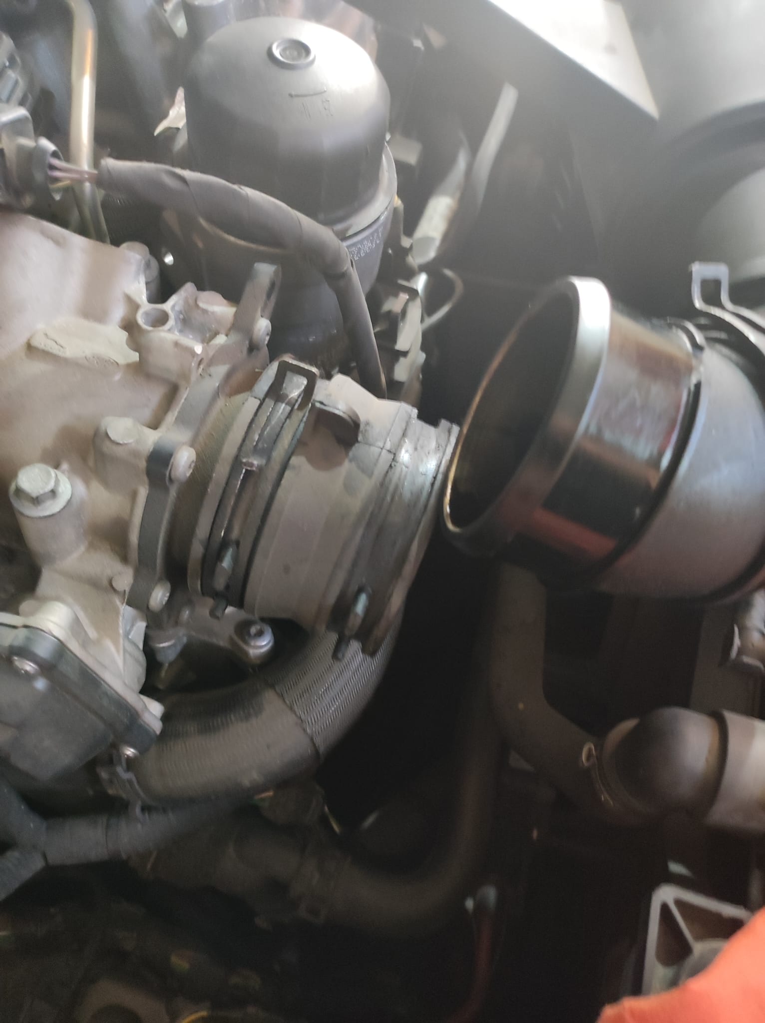 Lo primero es quitar el tubo de admisión, pero no lo quité de los tornillos como indica el vídeo, lo quité de la brida.