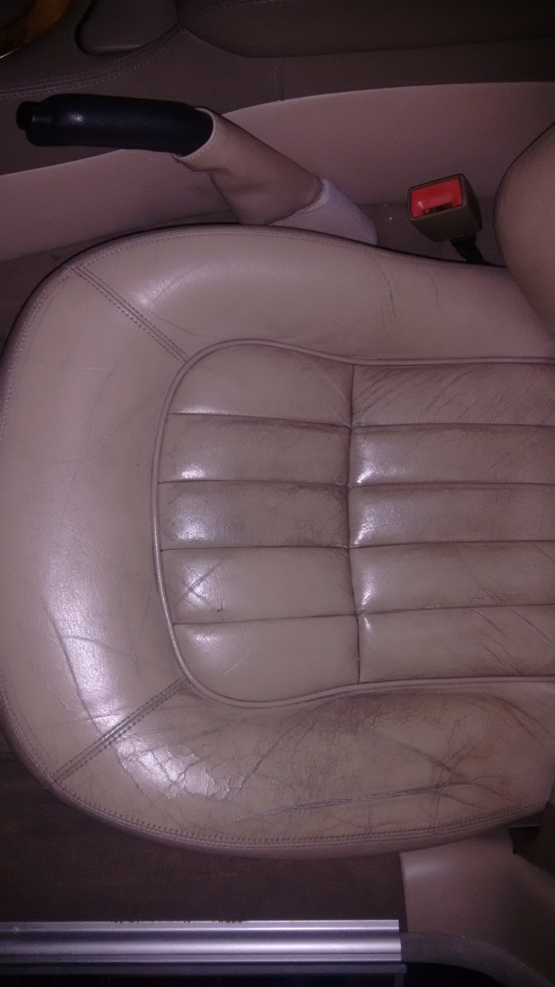 La tapicería, primero una buena limpieza. Si está cuarteada o descolorida, cuero líquido y tinte. No es complicado. Yo lo he hecho con el mio en ciertas partes desgastadas y es sencillo.