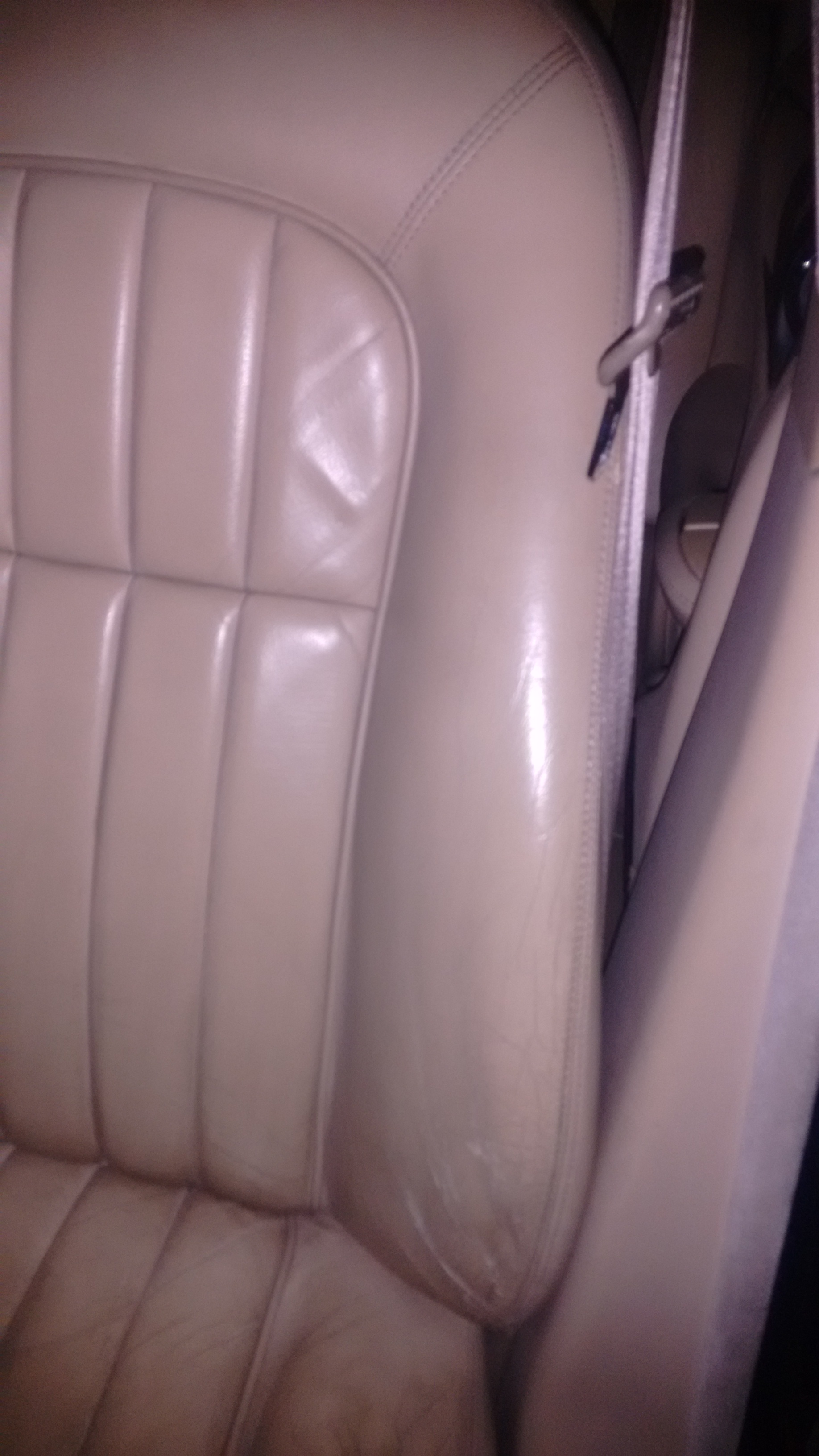 Bueno, pues aquí os dejo unas fotos de los desperfectos de tapicería y volante. Como veis están bastante mal, por favor, dadme vuestra opinión, lo veis recuperable? Supongo que necesitaré mucha mucha paciencia y más de un bote de cuero líquido, pero creéis que conseguiré que quede bien?