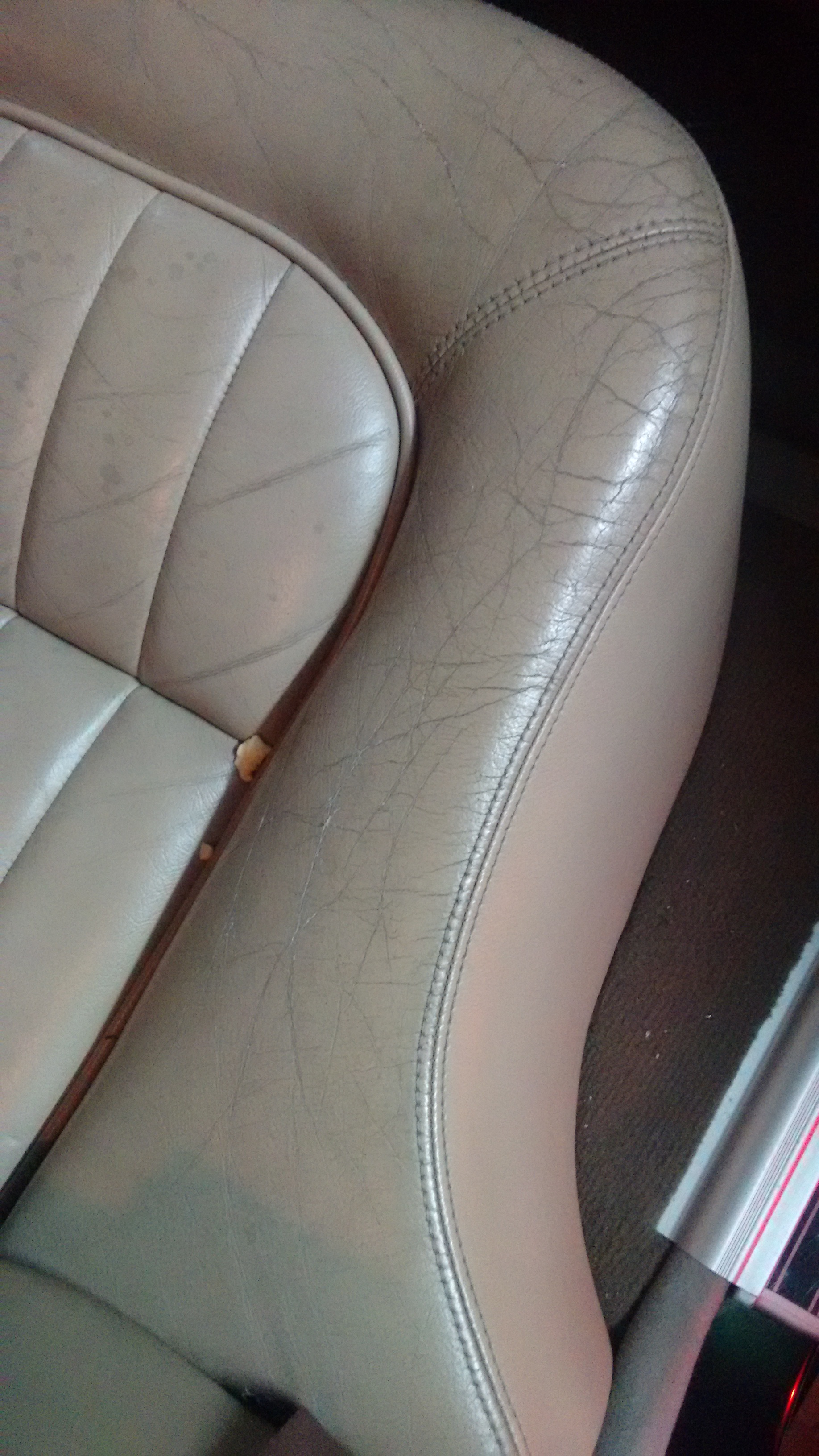 respecto a la piel , si esta salvable, una buena limpieza con Turtle, y listo, si ya esta muy mal, pues restauración con cuero liquido y reteñido...
