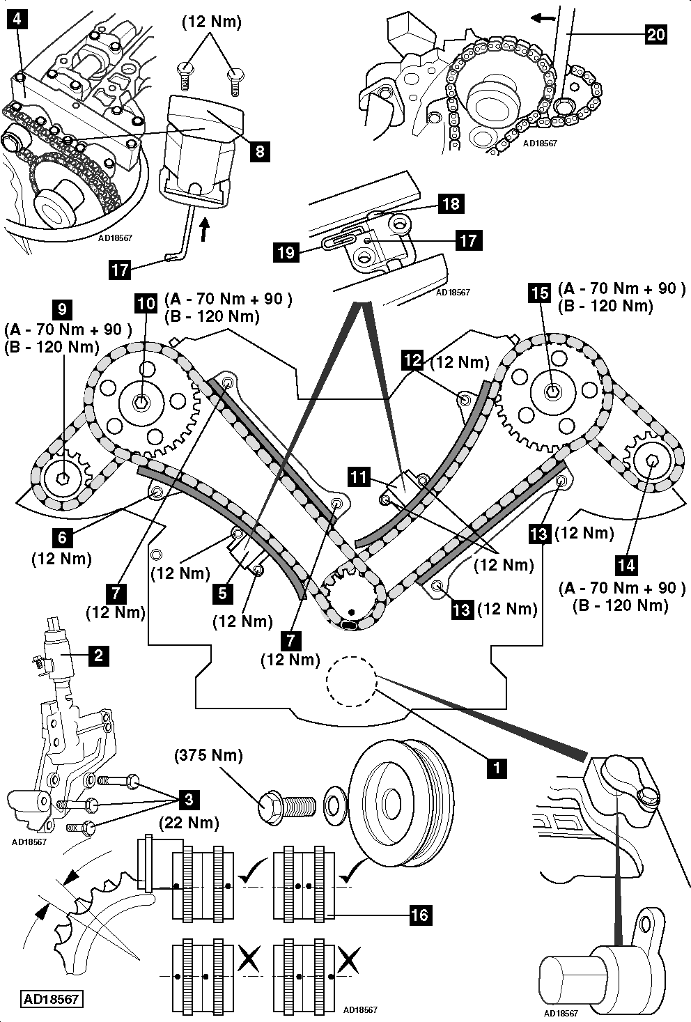 Diagrama de puesta a punto distribución Jaguar XJ6 4.2 l 32 válvulas V8 años 2003 al 2010,espero que les sea útil, saludos.