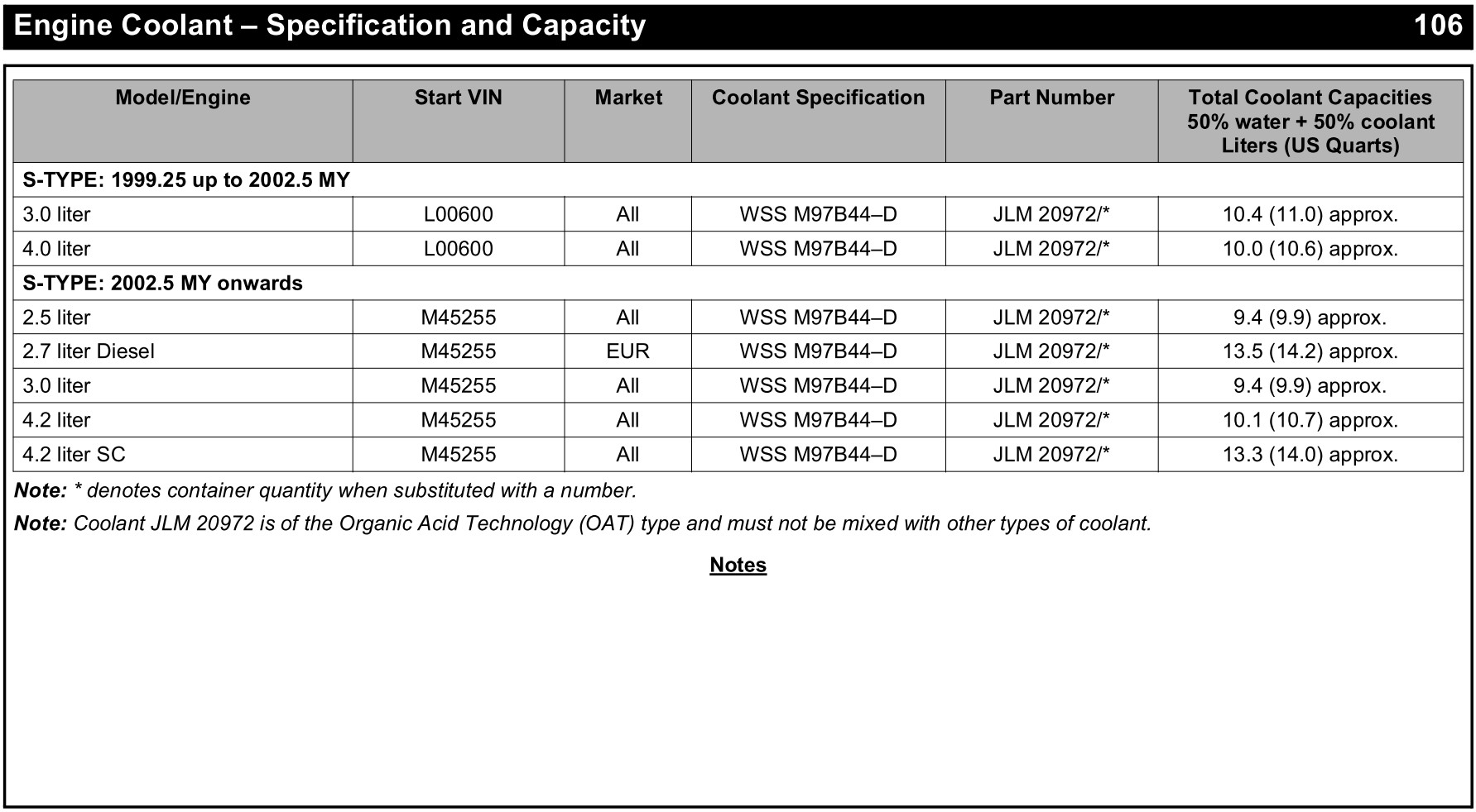 Ambos vehículos, el S-type con motor gasolina 3.0 anterior a 2003 y el XK con motor gasolina 4.2 posterior a 2003, han sido fabricados en la época en que Jaguar perteneció a FORD, por tanto, la especificación del anticongelante es de FORD.