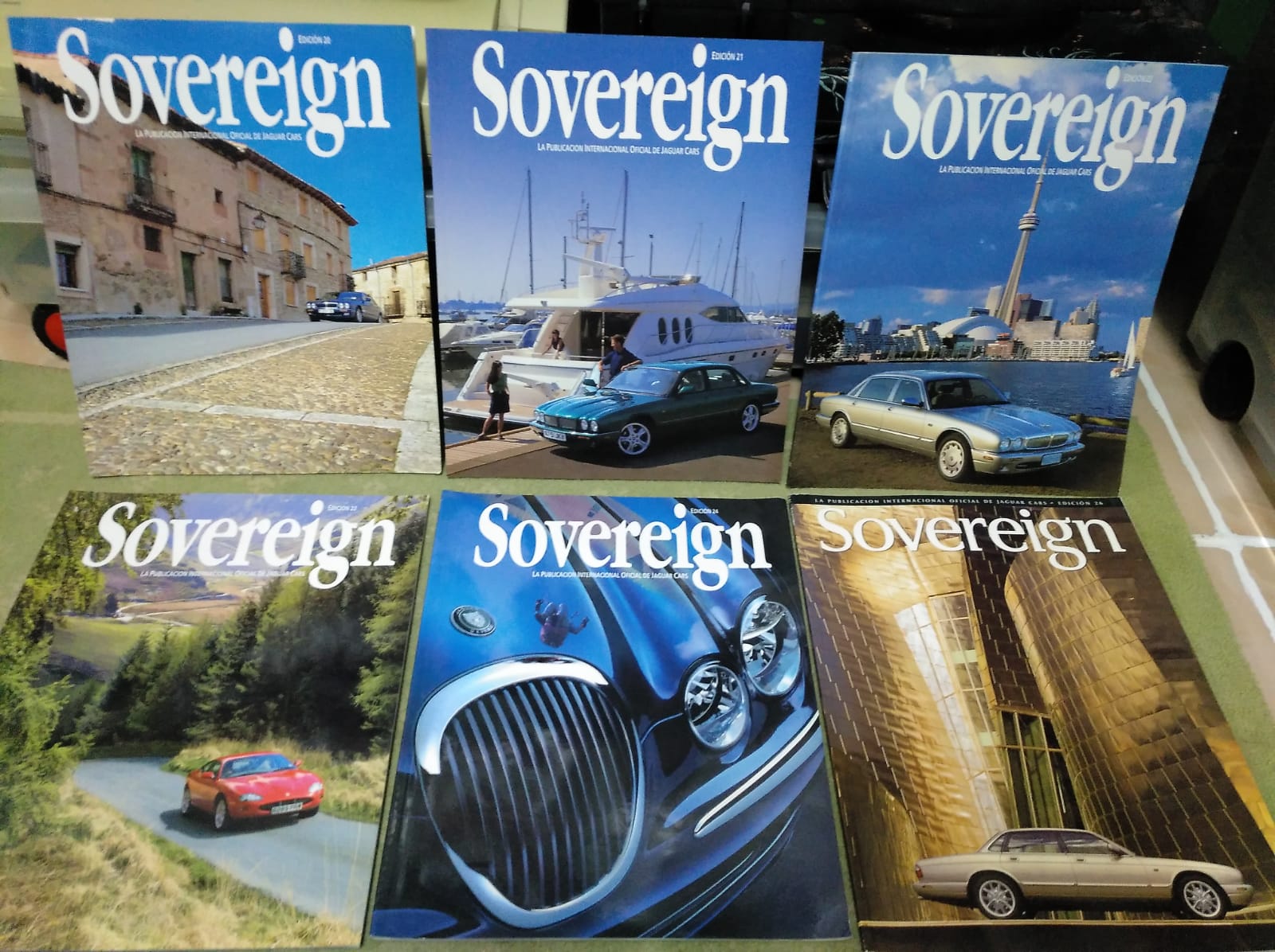 Se vende colección de revista SOVEREIGN, revista oficial de Jaguar Cars, números 1 al 30 (faltan los números 3, 8, 9, 10, 11, 14, 15, 25 y 29). Además se entregan los números 1, 3, 4, 5 y 7 de la revista JAGUAR, y el número de marzo/abril de 2000 de la revista Jaguar Racing. Y por último, cuatro números de la revista LEGEND (años 1989 y 1990), que era la que originariamente se enviaba a los clientes de Jaguar.