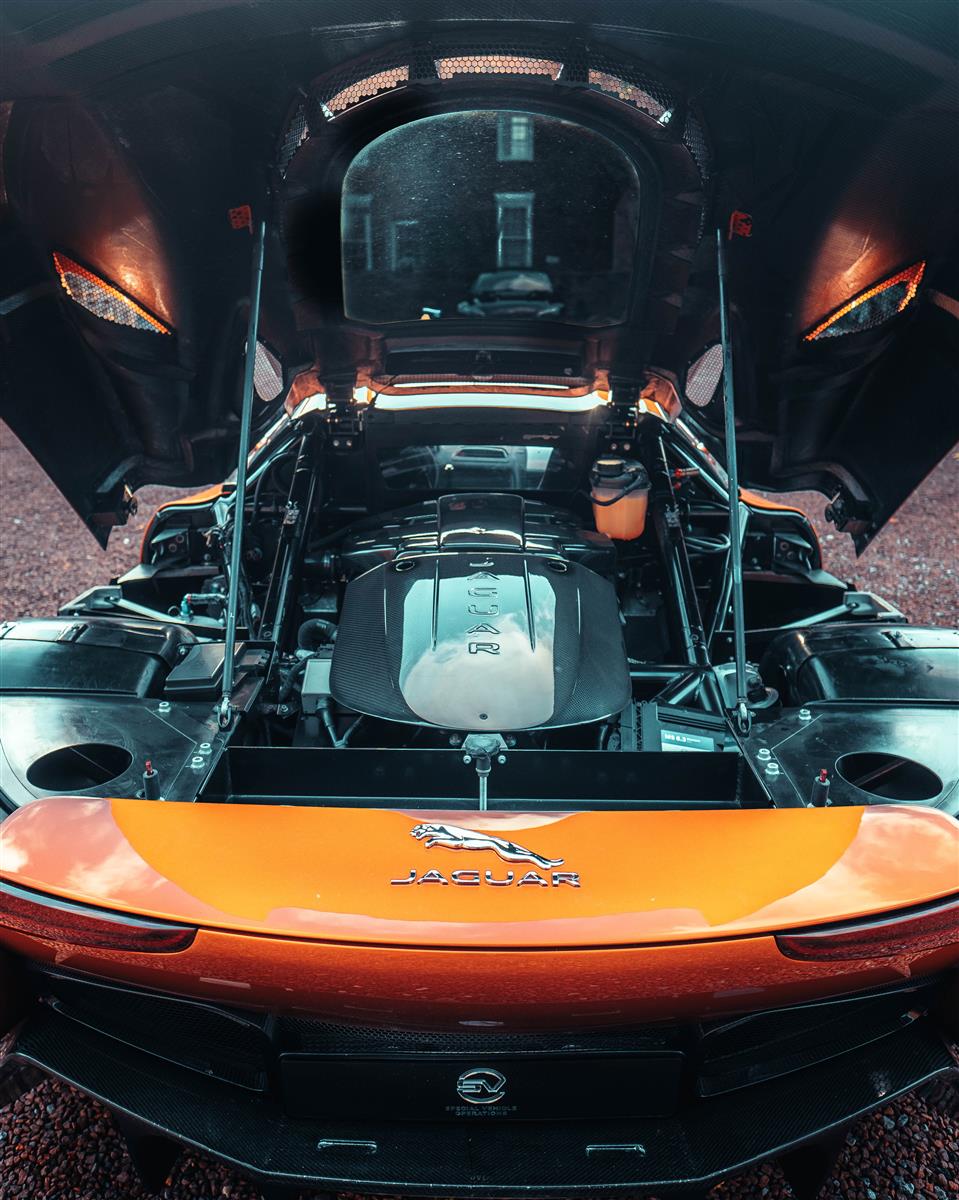 Este C-X75 en particular fue uno de los siete autos de acrobacias usados en Spectre y tiene el chasis número 007. Si bien tiene el mismo aspecto que los prototipos C-X75 completamente funcionales que desarrolló Jaguar, no cuenta con un tren motriz híbrido complejo y es en su lugar, impulsado por un V8 sobrealimentado de montaje central.