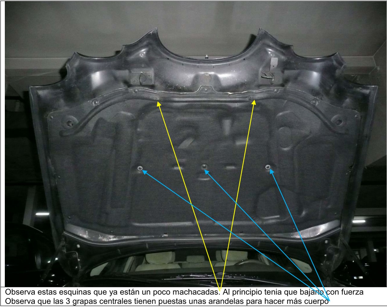 Gracias Javier...lo volveré a montar en cuanto me lleguen las grapas de sujección que he pedido...las viejas se me han partido la mayoría y necesito 8 más para sujetarlo de forma correcta y probaré nuevamente, aunque me da miedo deformar el capot al realizar un golpe seco para que cierre...o estropear el cierre, ya que suena bastante cuando lo he intentado cerrar y no me hace gracia hacer unos picotazos en el capot, o tener que cambiar el cierre...ya contaré si ha funcionado...espero que sí.