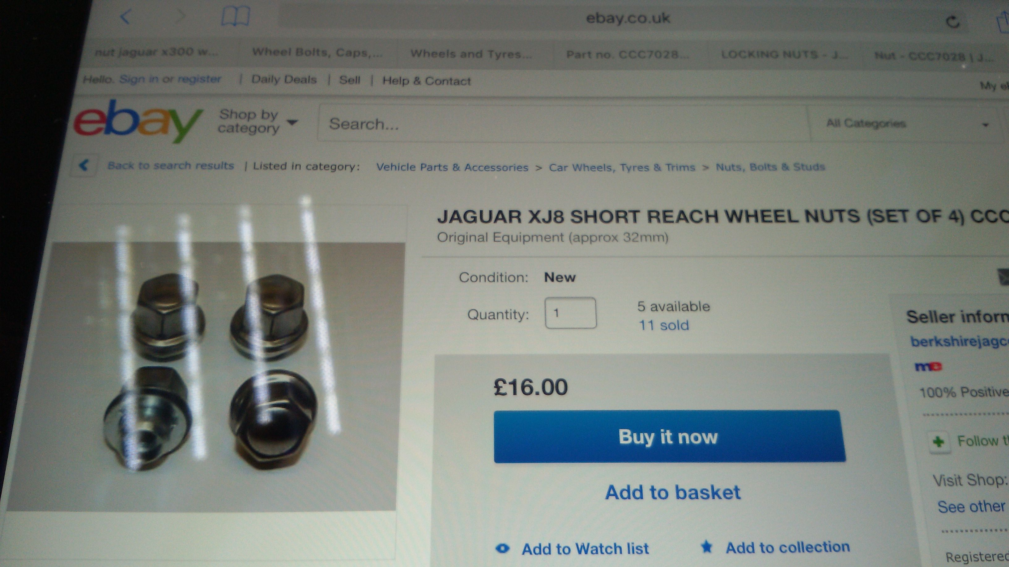 Un tema curioso, es que la llanta de acero y tapacubos lleva unas tuercas de asiento cónico y las llantas Kiwi piden tuercas de asiento plano. Así que compré en ebay un juego "nuevo" por unos 105€. Es caro, pero tened en cuenta que la casa Jaguar pide aprox unos 20€ por tuerca... (saldrían unos 400€).