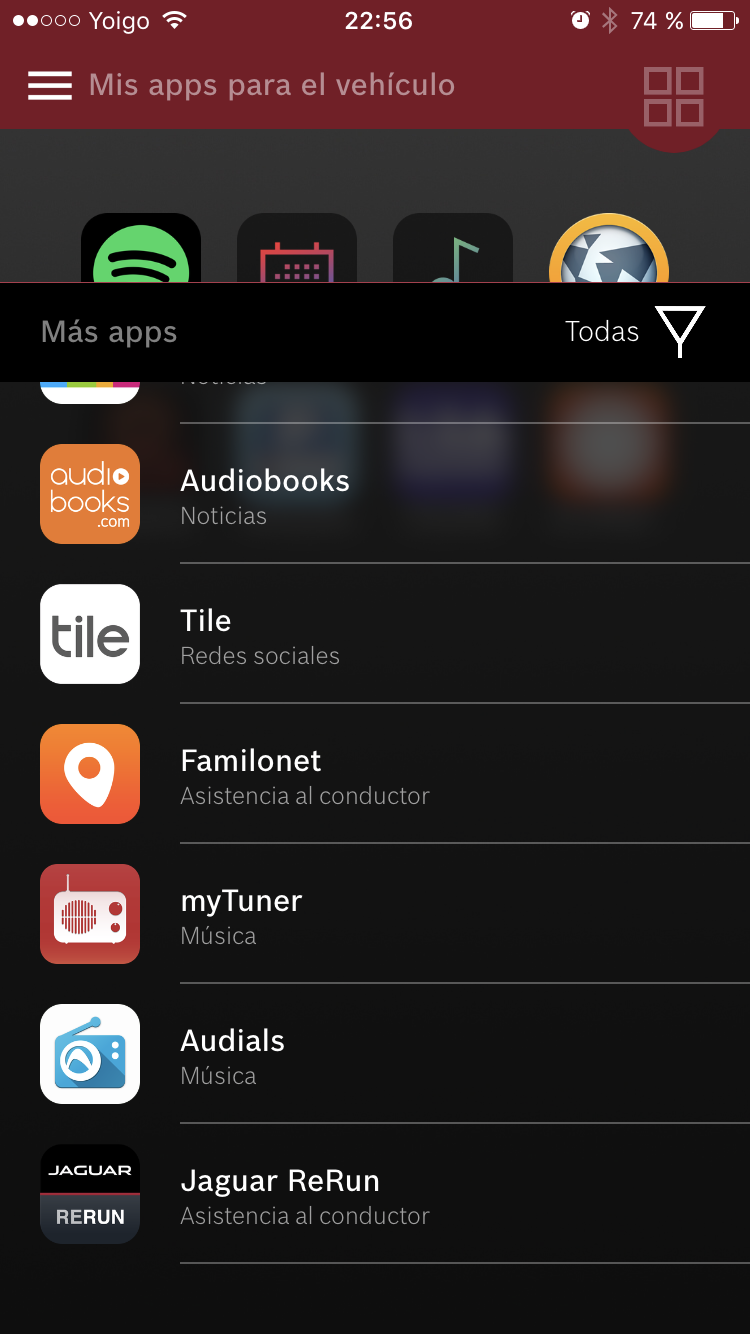 El problema vino ayer cuando quise instalar aplicaciones al coche. Llevaba días con la aplicación Jaguar Apps en el Iphone lista para hacer la instalación, cuando me dí cuenta que el incontrol de mi Jag no lleva la InControl Apps.