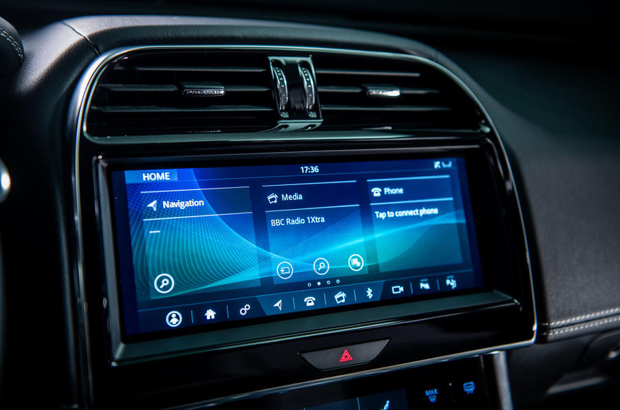 Los plásticos duros han sido reemplazados incluso en los lugares más discretos y ahora puede obtener una XE con tres pantallas TFT integrales en su fascia, similares a las de un I-Pace, y completas con los prominentes controles de giro montados en la consola de Jaguar que se iluminan Para operar la ventilación y el infoentretenimiento. Ahora también puede obtener el espejo retrovisor ClearSight basado en la cámara de Jaguar como opción, a cambio de una 'aleta de tiburón' montada en el techo mucho más grande.